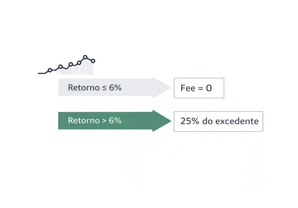 O serviço é remunerado com base nos resultados obtidos, garantindo alinhamento total entre cliente e Mystockideas. A carteira é avaliada a cada seis meses e o pagamento, se aplicável, tem a mesma periodicidade. Aplica-se o princípio da high-water mark: só há remuneração se o valor da carteira ultrapassar o máximo histórico anterior. A comissão incide apenas sobre o retorno gerado acima desse nível.